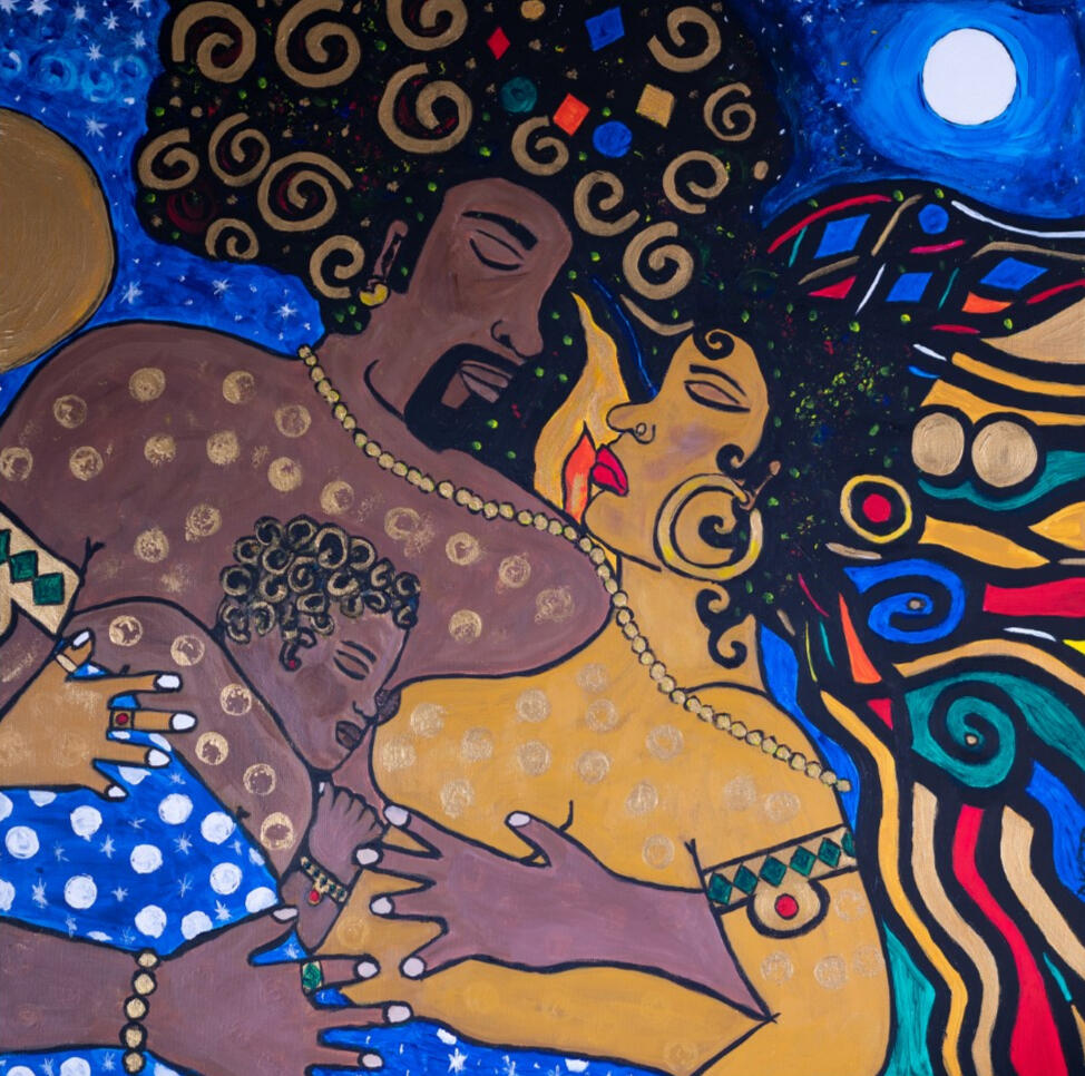 Inspired by Klimt's "The Kiss" and the poem "Heaven" by Donna Coley-Trice. Artist interpretation of Black love & passion